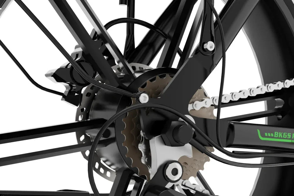 With a compact folding frame, this e-bike is easy to store and transport in RVs, SUVs, car trunks or apartments. The iron frame provides durability and strength while keeping the net weight at 38.6 kilograms, making it sturdy yet manageable.